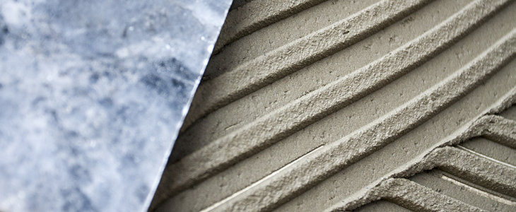 Es empfiehlt sich, kleine Flächen zu bearbeiten und frische Klebstoffreste von der Fliesenoberfläche zu entfernen. Bei Travertin, der auf der Unterseite Risse haben könnte, empfehlen wir, sowohl auf die Fliese als auch auf die Unterlage Kleber aufzutragen.