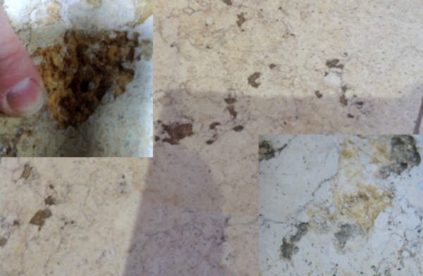 2. Initiieren des Oxidationsprozesses, in Kontakt mit den Metallpartikeln, die normalerweise in Naturstein zu finden sind.