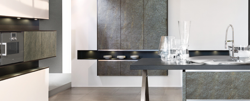 Lately, the concept "less is more" is highlighted for kitchens – a spacious, minimal space with a clean, yet elegant look. The modern facilities of a kitchen are promoted, because are increasingly sophisticated and less time consuming. The kitchen elements assume the elegance, realism and colors rage of furniture items for the living room, while finishes are meant to amplify the sensation of space. Current trends highlight the serene, neutral shades, yet constrasting different elements. Of course, colors and finishes are inspired by nature. Kitchen decoration projects as a social space, more comfortable and inviting, require more daring details and revolutionary materials – such as SKIN flexible slate, the flexible natural stone – for replacing wooden flooring and traditional ceramic tiles.