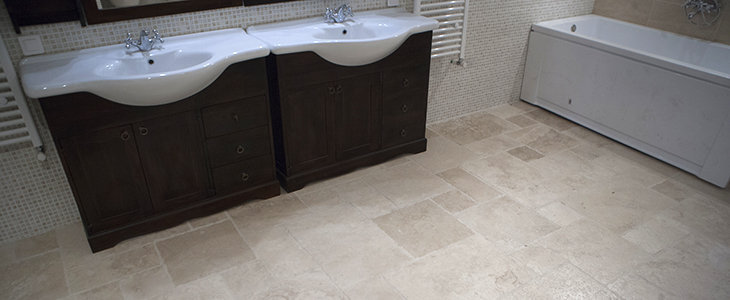 Französischer Travertin-Bodenbelag, getrommelt, mit gemeißelten Kanten