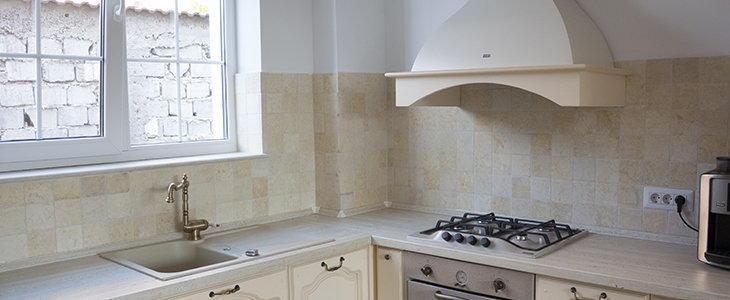 Für die Küche könnten Fliesen mit farbigem Design eine gute Idee sein. Falls Sie es etwas schlichter mögen, können Sie Sunny Dream Tumbled Marble mit entspannenden Beige- und Cremetönen ausprobieren.