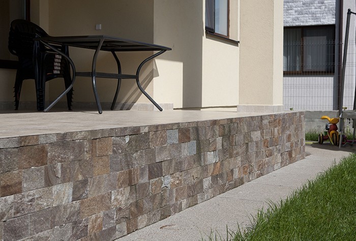 Haussockel mit mehrfarbigem Schiefer verkleidet – Projekt des Kunden PIATRAONLINE.com