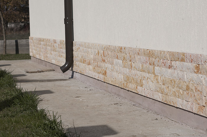 Haussockel verkleidet mit Sunny Dream Splitface Marble 7x30 cm (Projekt des Kunden PIATRAONLINE.com)