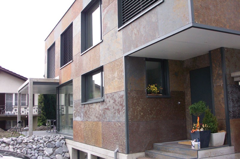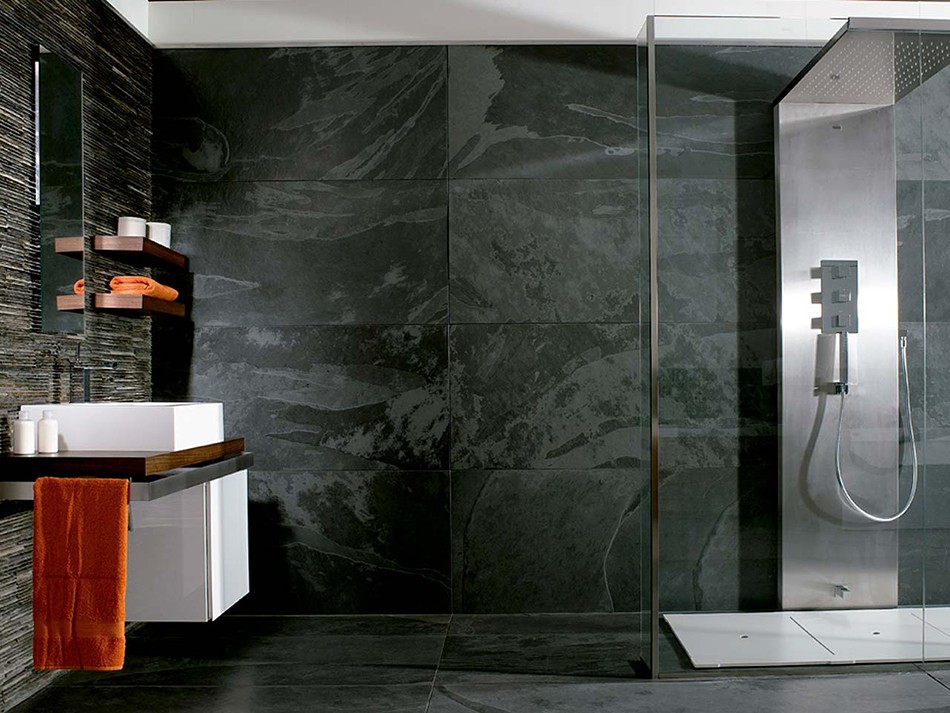 Badezimmer, Küchen, Wohnzimmer, Lobbys, Büroräume, Schönheitssalons, Restaurants oder Cafés sind einige Beispiele für mit Schiefer dekorierte Räume, die aufgrund perfekter Farbvariationen und erhöhter Haltbarkeit spektakulär sind.
