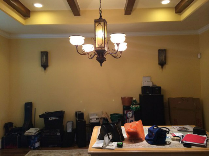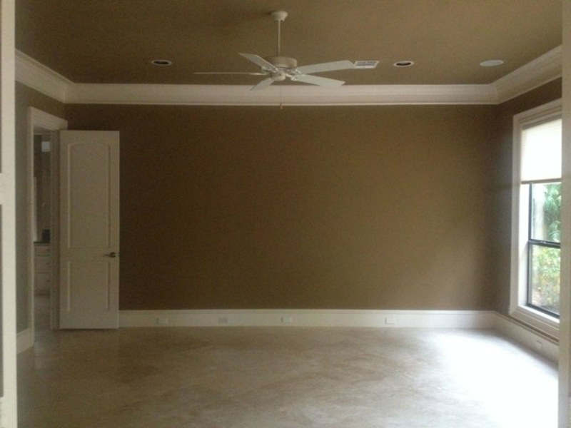 Beispiel 3 kann als erzwungener Vergleich zwischen den beiden Dekorationsprojekten angesehen werden, aber wir unterstützen es auch, indem wir zeigen, dass ein dominantes Braun in einem Raum ein hoffnungsloser Fall ist, selbst wenn Sie Balken an der Decke haben. Die Balken sind in 99% der Fälle eine sichere Sache. Wir betonen im dekorierten Raum die linear geteilte Wand in kleinen, wohlproportionierten Räumen, die das sogenannte „Waben“-Gefühl erzeugen, durch das eine Wand belüftet wird und einem kleinen Raum Tiefe verleiht. Offensichtlich spielt Weiß hart und gewinnt auch hier.