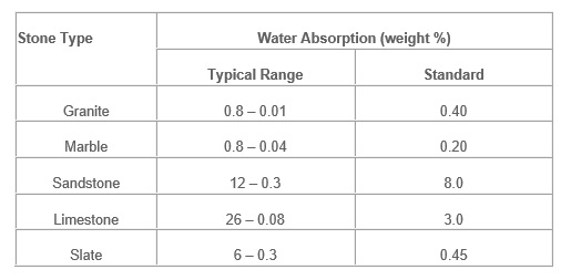 Aus der obigen Tabelle sehen wir, dass Marmor einen geringeren Absorptionsgrad anzeigt, was zu dem Schluss führen würde, dass Marmor stärker fleckt. Dieser Indikator deckt jedoch nicht das ganze Phänomen auf, da wir noch die Steinzusammensetzung berücksichtigen müssen. Einige Flecken werden durch die chemische Wechselwirkung zwischen den Bestandteilen des Steins und dem Färbemittel verursacht. Zum Beispiel enthalten die meisten Kalksteine und Marmor Calcit, das empfindlich gegenüber Reaktionen mit Säurelösungen ist.