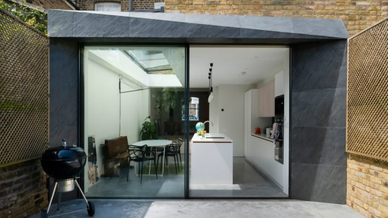 Das Büro Architecture for London stellte sich diese schieferfarbenen Erweiterungen von Backsteinhäusern vor.