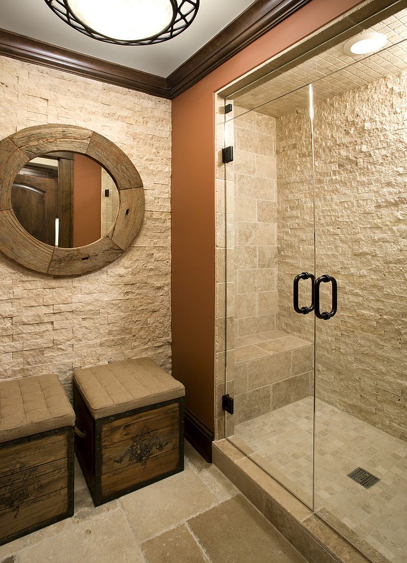 Das Splitface-Finish vermittelt Ruhe und Entspannung, als ob der Kontakt zwischen Stein und Natur direkt auf einem Berg in absoluter Stille stattfinden würde. Vielleicht liegt es an diesem Gefühl, das oft in einem mit Naturstein dekorierten Raum wahrgenommen wird, dass viele Menschen für ihre Badezimmer Natursteinprodukte mit unbehandelter Oberfläche bevorzugen. Der Splitface-Travertin von Foto 1 schafft in Kombination mit getrommeltem Travertin eine perfekte Atmosphäre. Die Kombination ist subtil, aber umso entspannender. Natürlich wurden alle hier vorgestellten Steine, insbesondere für das Badezimmer, imprägniert!