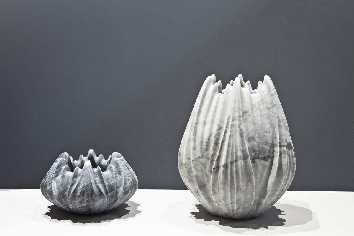 Zaha Hadids Bedürfnis, avantgardistische Ideen zu vermitteln, wird durch Naturstein mit seiner angeborenen Perfektion perfekt ergänzt. Die sanften Rundungen ihrer Marmorblumen wecken den latenten Konflikt zwischen ihrer intrinsischen Verletzlichkeit als lebendige Elemente und der konstanten Härte von Naturstein.
