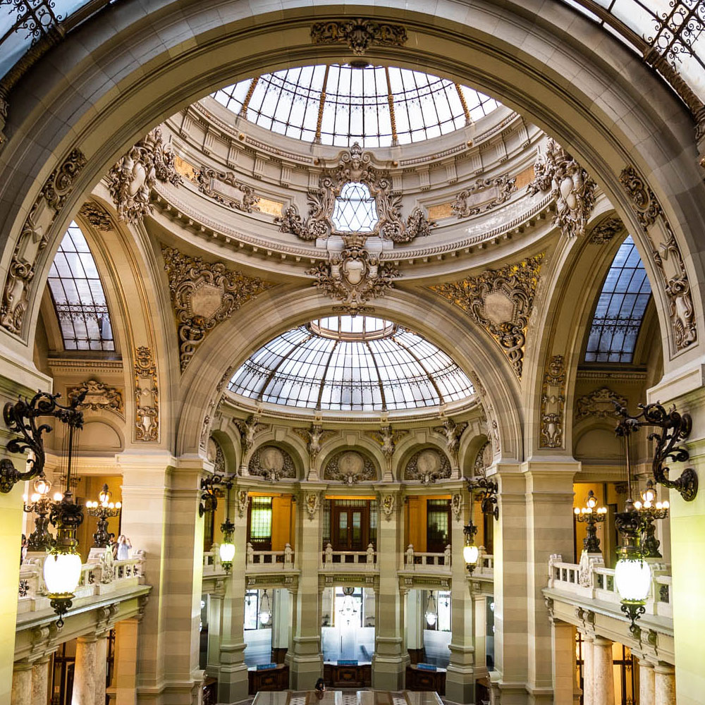 The construction was completed in 1900 and since then CEC operated in this building without any other notable adjustements. Besides its monumental beauty, this building is also durable. It was not affected by any earthquake, only minor damage of the main dome in 1977, nor was it touched by the terrible bombings experienced by Bucharest during the Second World War.