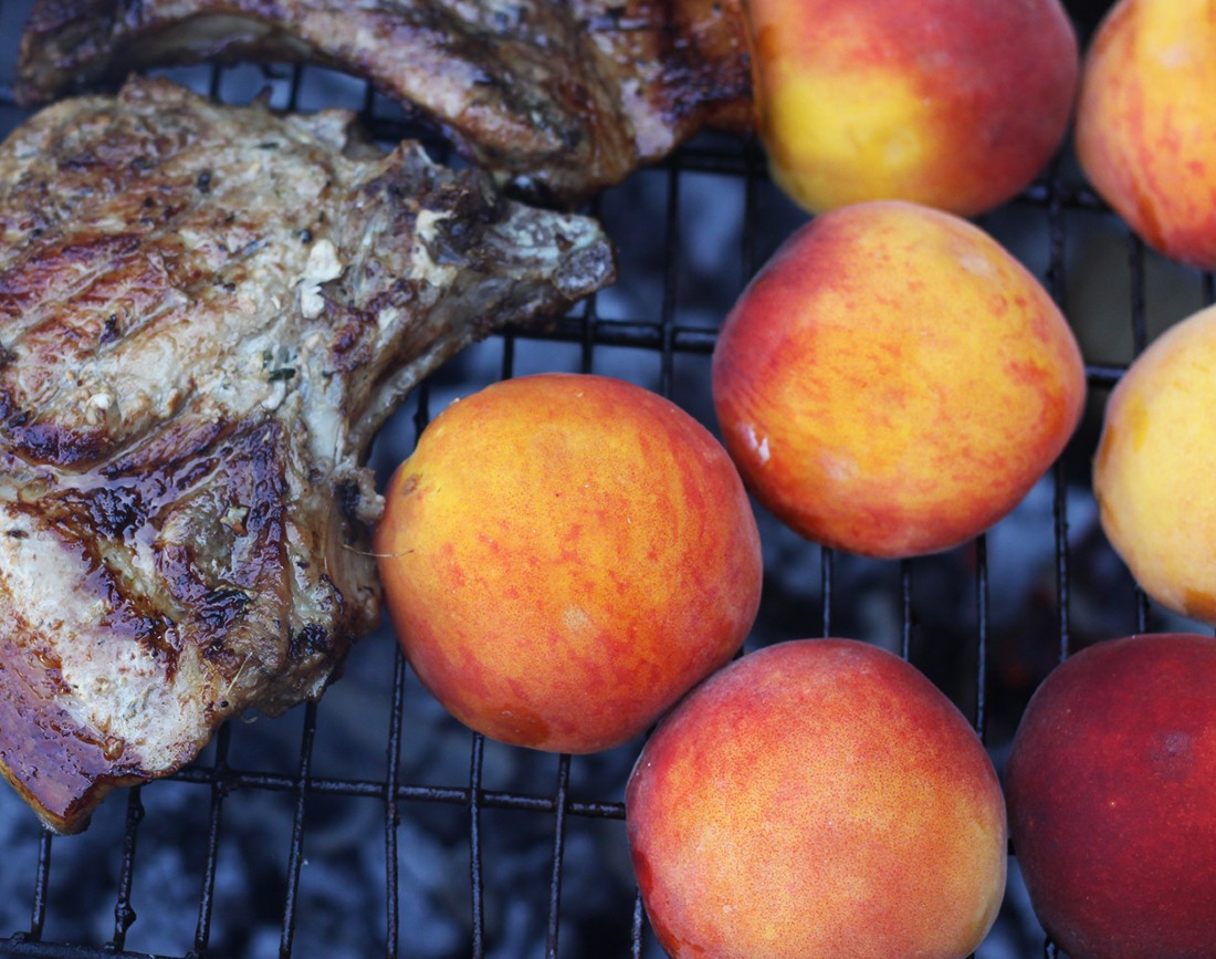 Ein tolles Dessert für Sommerabende im Hinterhof. Schneiden Sie die Pfirsiche in Keile oder Würfel, legen Sie sie in eine erhitzte Grillpfanne und wenden Sie sie von allen Seiten, bis sie weich werden. Legen Sie sie auf einen Teller und bedecken Sie sie mit Folie.