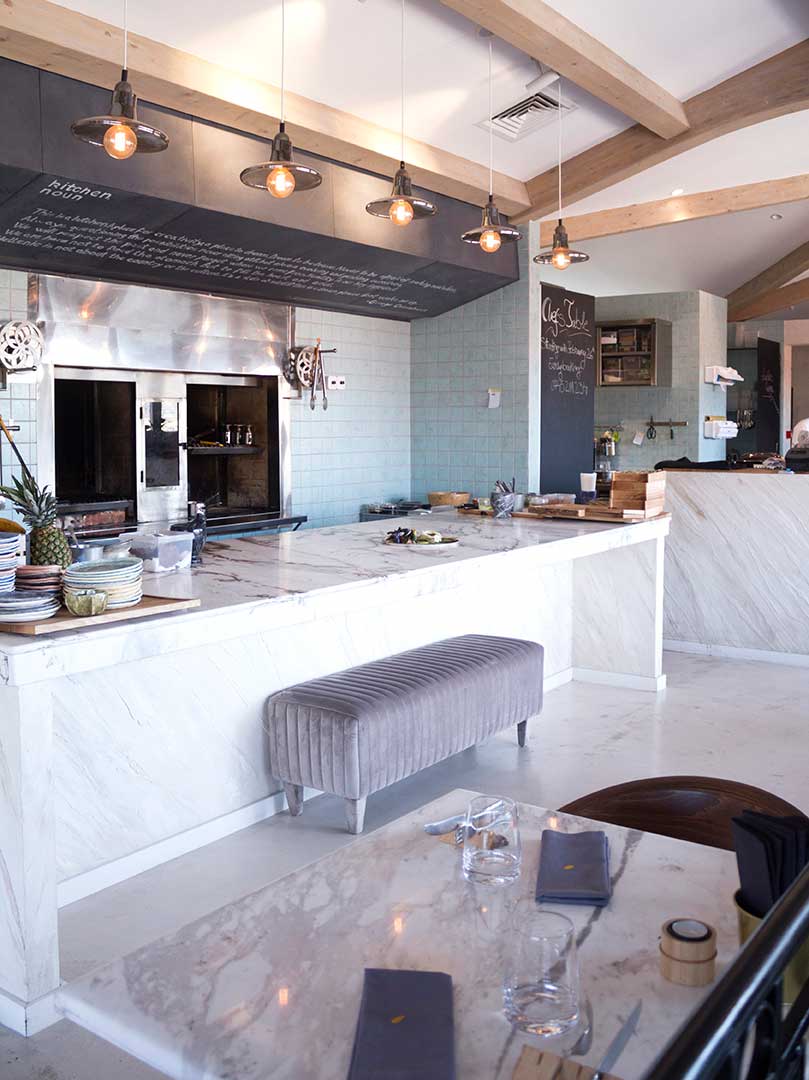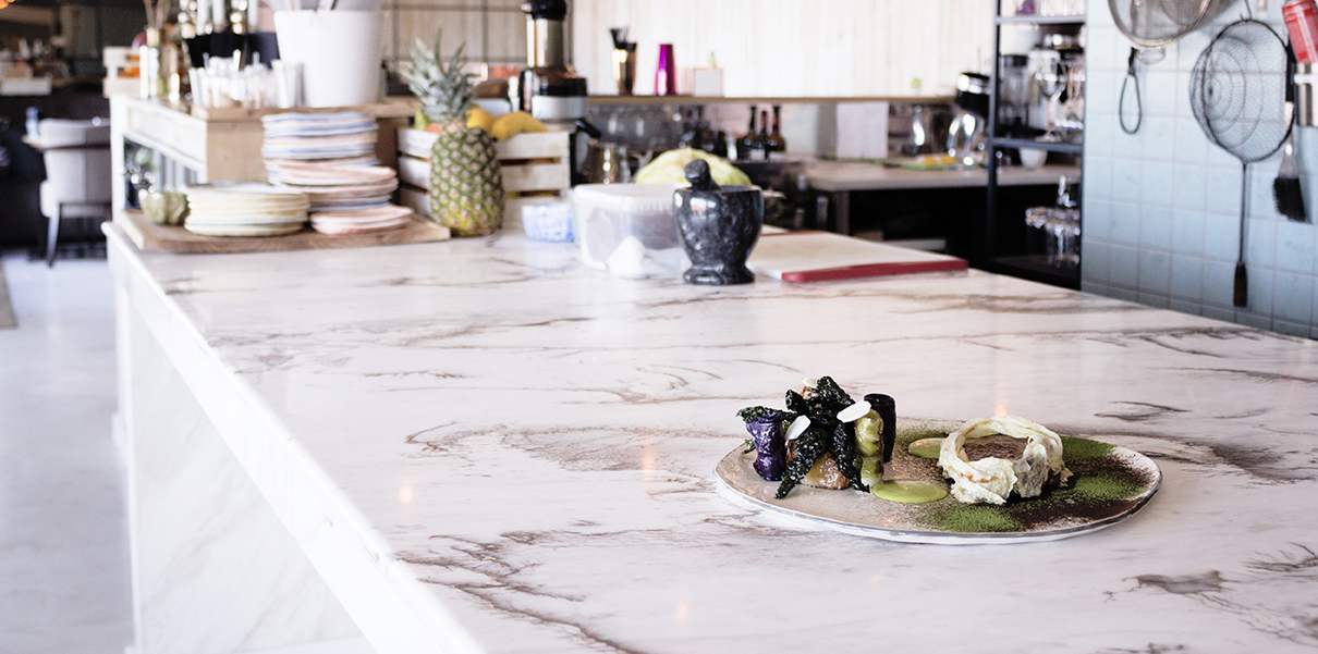 PIATRAONLINE : MAIZE hat zwei Arbeitsplatten aus Volakas-Marmor. Warum haben Sie sich für Naturstein entschieden? Welche Botschaft vermitteln diese Marmorplatten den MAIZE-Kunden in einem Restaurant mit der Überschrift „La Nouvelle Cuisine Roumaine“?