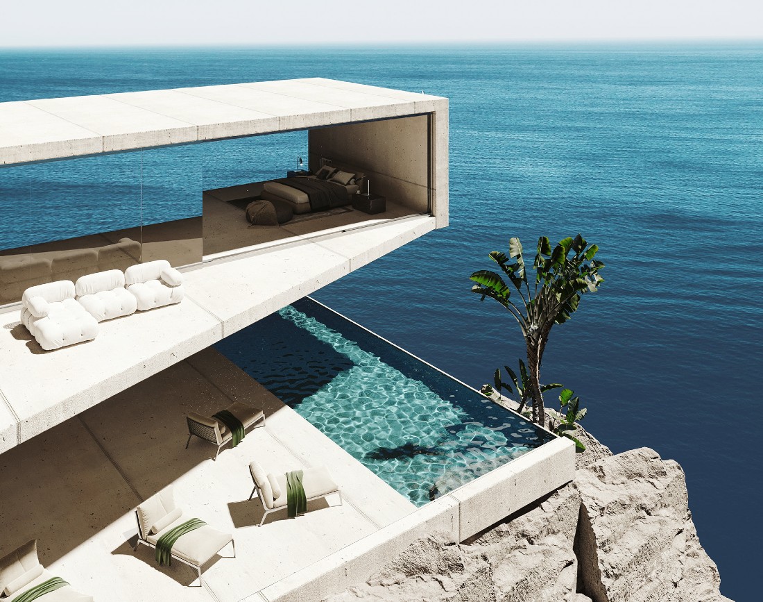 „Unsere Projekte haben kein einzigartiges Design, es gibt keinen bestimmten Stil, der zu Beginn ausgewählt wird, obwohl die Inspiration sicherlich minimal ist. Die natürliche Umgebung spielt in all unseren Projekten eine so herausragende Rolle, um mit der Architektur zu verschmelzen. Sehr wichtig ist die Umgebung, die immer sehr präsent ist und oft mit der Architektur eins wird, indem sie in sie eindringt (siehe minimale Schönheit) Jeder Raum, sowohl innen als auch außen, wurde nach dem Konzept der Öffnung nach außen gestaltet, das Gebäude verliert seine Funktion als Zuflucht / Schutz, wie er in der Vergangenheit immer gewesen ist, was Harmonie mit der Außenwelt suggeriert, aber das Gefühl, das Sie vermitteln möchten, ist, Teil der Welt zu sein.