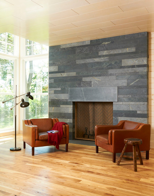 Eine solche Wand eignet sich für ein paar einfache, einfache Massivholzregale, vielleicht mit hellen Farben, sogar Weiß, um die Schönheit von Schiefer hervorzuheben. Dies ist ein einzigartiges Material, kraftvoll und voller Charakter, das perfekt zu einem stilvollen Wohnzimmer passt; Denken Sie daran, ein paar dekorative Kissen, eine weiße Couch oder einen Teppich mit hellem Schatten hinzuzufügen. Dadurch wird Ihr Haus immer eine frische Luft haben, ähnlich wie bei Anthracite Black Riven Slate aus dem Beispiel unten.