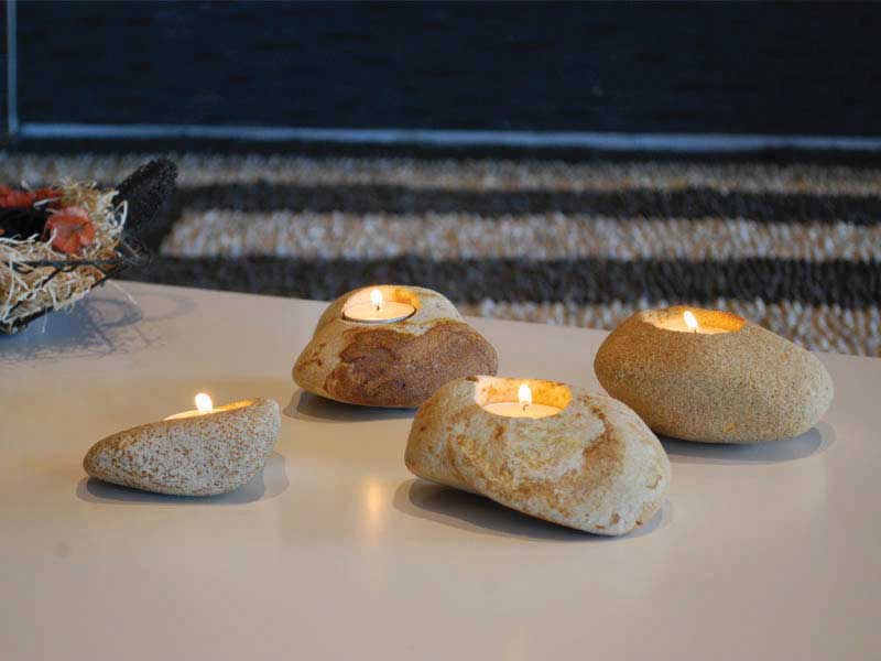 Ein paar Besonderheiten zur Ergänzung Ihres Ambientes sind die handgefertigten Kerzenhalter aus Sandstein.