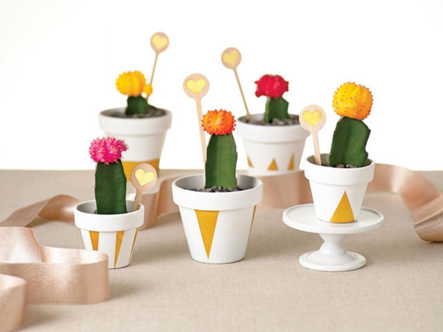 Kleine und zerbrechliche Sukkulenten-Minitöpfe könnten diese besonderen Erinnerungen für Ihre Gäste sein. Für einige handgefertigte Mini-Boxen, um den Transport zu erleichtern, können Sie mit einem Designer zusammenarbeiten oder die Brautjungfern um ein wenig Hilfe bitten.