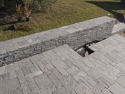 Ein solcher Naturstein ist sehr widerstandsfähig gegen starken Verkehr und Frost-Tau-Wechsel und wird hauptsächlich für Gehwege, Gehwege oder die Landschaftsgestaltung von Hinterhöfen und Gärten verwendet. Die Fliesen können auf empfohlenen Untergründen wie Kies, Grünflächen oder Sandbett (für Fußgängerwege) oder Beton mit halbtrockenem Estrich für eine lange Lebensdauer in stark frequentierten Bereichen/Parkhäusern verlegt werden.