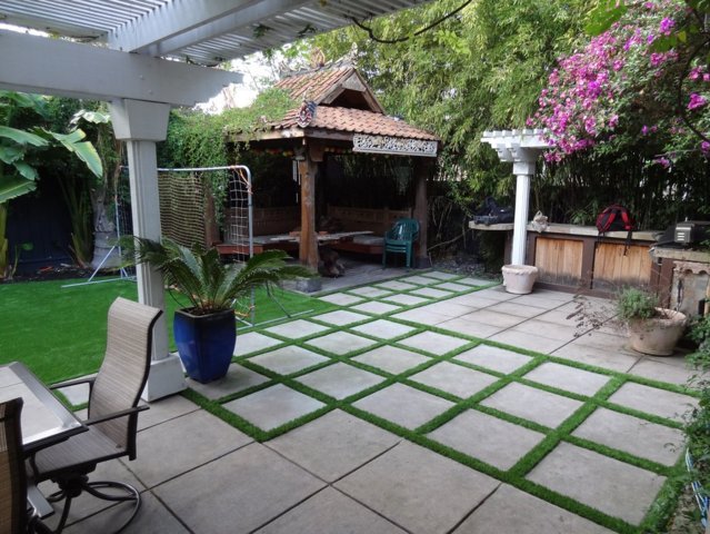"Band"-Gassen sind wieder in Mode: Sie können die beiden Seiten des Eingangswegs des Hinterhofs mit Naturstein pflastern, sodass das Gras zwischen den Fliesen wachsen kann, um einen interessanteren Effekt zu erzielen. Wenn Sie selbst einen Gehweg für Ihren Garten bauen möchten, lesen Sie zuerst die Empfehlungen aus dem Artikel Gehwege für Fußgänger – schön und nützlich .