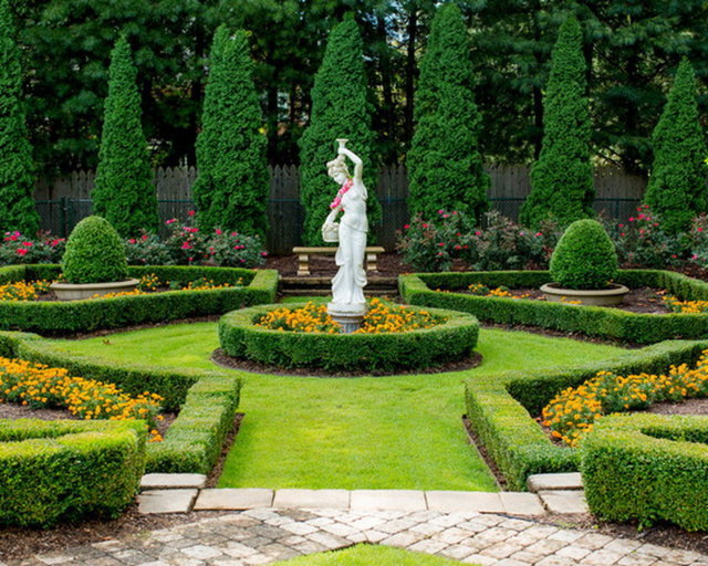 Symmetrie ist ein wichtiges Prinzip im italienischen Garten. Wenn Sie planen, einen eleganten Garten zu gestalten, der von der Eleganz der Renaissance inspiriert ist, muss alles mit äußerster Sorgfalt für die Geometrie gestaltet werden: Die Bereiche für Pflanzen und Gehwege sollten eher gerade, nüchterne Linien verwenden. Viele Häuser in Italien sind in den Hügeln platziert, und dann entwickelte sich die Gartenarchitektur auf Ebenen: Einerseits ist das Panorama des Hauses in den Garten fabelhaft, aber es geht auch in beide Richtungen und hebt das Haus hervor.