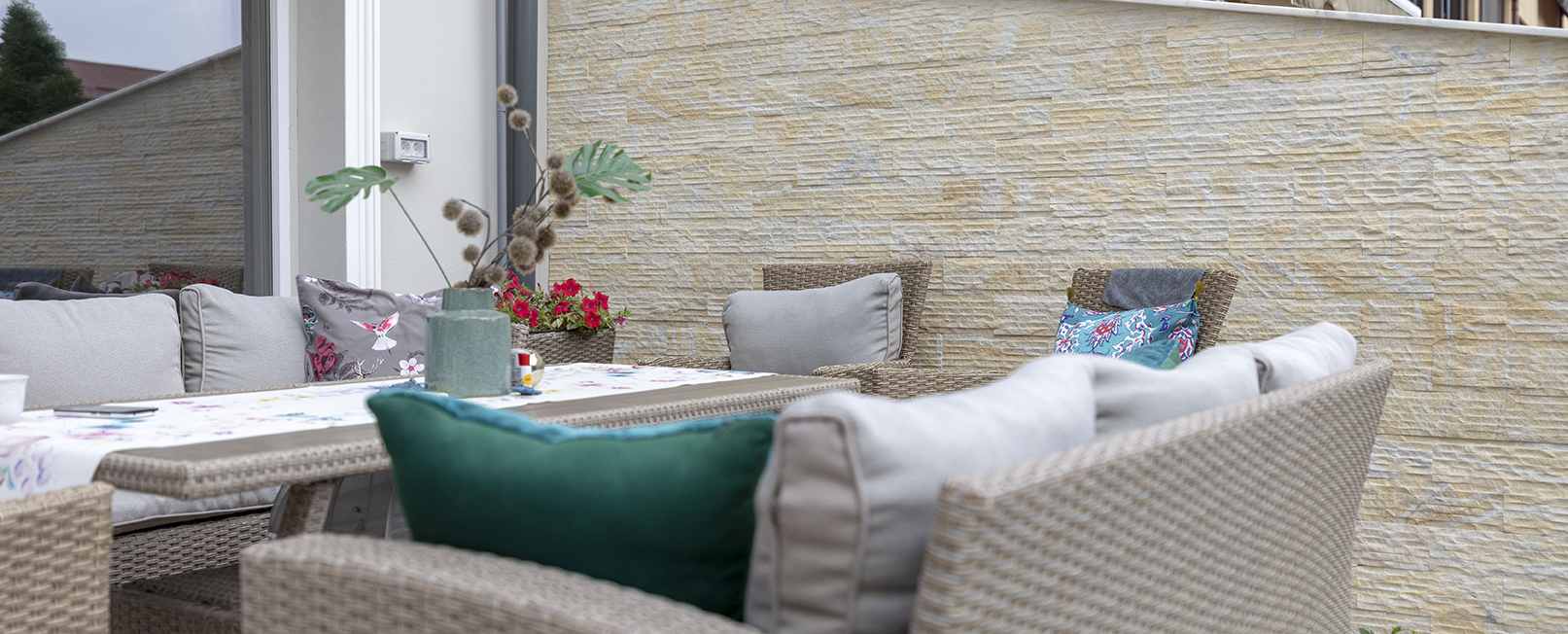 Trotz eines relativ hohen Preises im Vergleich zu anderen Baumaterialien wie Backstein – Sicht- oder Naturstein – haben Steinhäuser langfristige Vorteile. Naturstein vermittelt Stärke und Sicherheit, Eleganz und einen klassischen / rustikalen / modernen Stil. Neben ihrem einzigartigen Aussehen ist Splitface-Verkleidung ein langlebiges und äußerst widerstandsfähiges Material gegen viele äußere Faktoren, einschließlich Temperaturschwankungen. Außerdem verbessert eine Außenverkleidung aus Naturstein die thermische Leistung des Hauses.