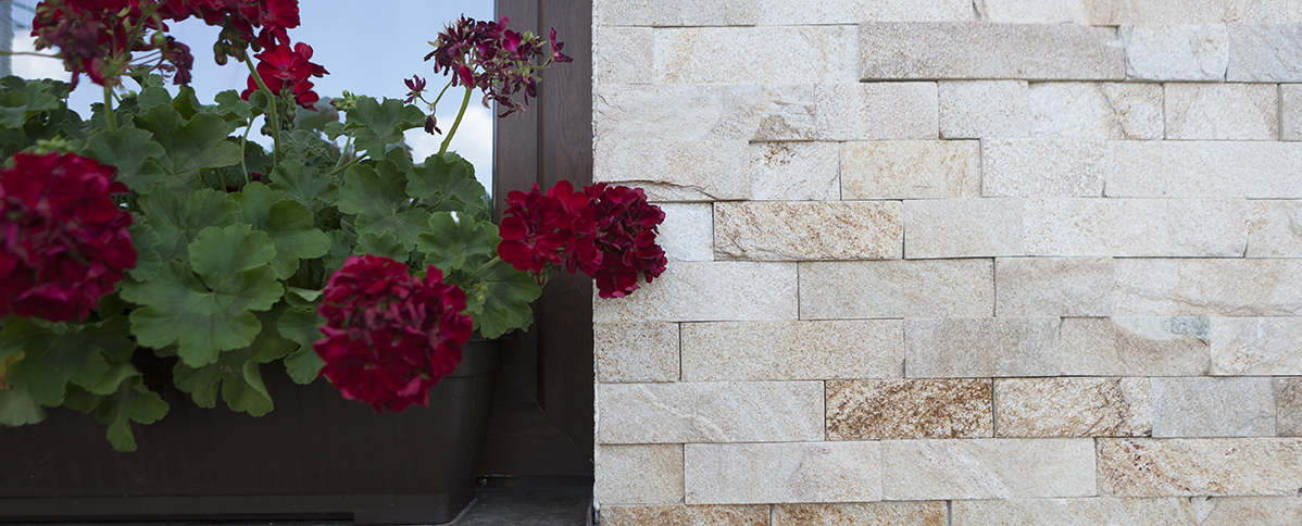 Falls Sie sich entschieden haben, Naturstein für Außenwände zu verwenden, sollten Sie darauf achten, dass die Fliesen wasserdicht sind, denn dieses Projekt ist eine langfristige Investition, daher sollten Sie es so lange wie möglich genießen. Die Imprägnierung verhindert das Eindringen von Wasser in die Steinstruktur und weist ein hervorragendes Verhalten gegenüber korrosiven Einflüssen auf. Die Steinfliese ist einzigartig: Mit ihren Adern oder den besonderen Merkmalen werden Farben zur Dekoration verwendet: getönte Grautöne, Beige, Creme, Gold oder Schwarz mit einem Hauch von Grün. Nicht zuletzt bringen die Eigenschaften jeder Steinart neue Vorteile für Ihr Projekt, verbunden mit verlängerter Haltbarkeit, hervorragendem Verhalten bei Frost-Tau-Wechseln oder Feuchtigkeitsbeständigkeit. Eine große Auswahl an Veredelungen erzeugt interessante Spiele über der Textur und bringt das Material Ihrem gewünschten Stil näher. Außenwände können mit dem gleichen Material verkleidet werden wie die Zäune, der Terrassenboden oder die Gehwege im Hof oder Garten. Je nach Anwendung und bevorzugter Variante können Sie die gleiche Materialart, aber unterschiedliche Oberflächen wählen, um den Raum nicht mit zwei, drei oder mehr Natursteinsorten zu überladen.