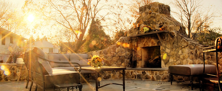 Mit Homa-Schiefer verkleideter Außenkamin