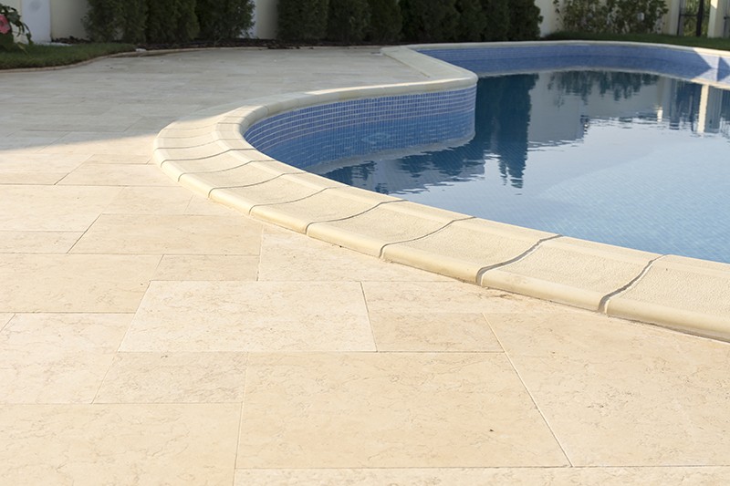 Die Beckenumrandung rund um das Schwimmbecken kann aus den unterschiedlichsten Materialien bestehen: Gusszement, Betonfliesen, Ziegel, Naturstein, sogar Holz. Welches Material Sie auch wählen, Sie müssen sicherstellen, dass es wasserdicht ist (damit es nicht durch Wasser zerstört werden kann) und eine gute Rutschfestigkeit aufweist (um das Rutschrisiko zu minimieren). Ein weiterer scheinbar unbedeutender Aspekt ist die Art und Weise, wie der Rand dieser Beckenumrandung im Inneren des Schwimmbeckens ausgeführt ist. Die meisten Menschen bevorzugen, dass diese Kante an beiden Kanten abgerundet ist (Bullnose). Das ist leicht zu erklären, denn sonst kann eine rechtwinklige Kante diejenigen verletzen / kratzen, die sich über kühles Wasser im Pool freuen.