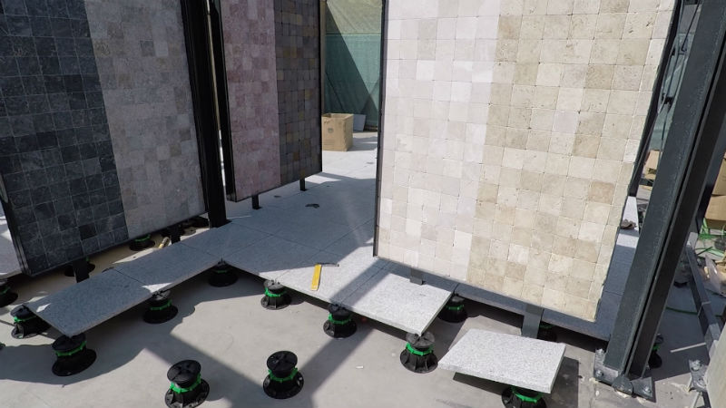 Der schwimmende Boden schützt Kabel, Strom, Fernseher, Schläuche usw. All dies kann unter den auf verstellbaren Plattenlagern gelagerten/befestigten Fliesen hindurchgeführt werden. Da die Fliesen dieser Art von Bodenbelägen jederzeit leicht manipuliert werden können, kann gleichzeitig der Zugang zu diesen Kabeln, Schläuchen oder Rohren im Notfall fast sofort erfolgen.