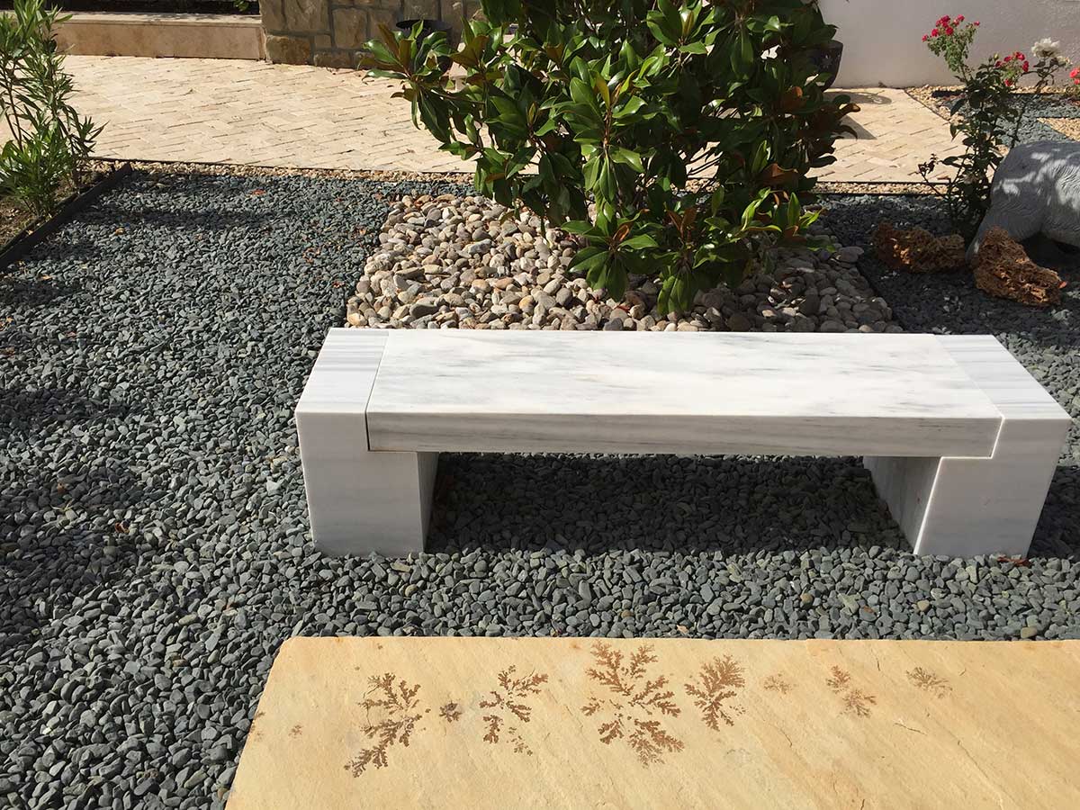 Zum Beispiel verwandelt eine Granitbank in Wüstenfarbe Ihren Garten in eine authentische Ecke der Natur, elegant und voller Anmut. Eine weitere stilvolle Option ist eine Bank aus Kavala-Marmor . Die Adern dieses Steins passen perfekt in jeden Garten und verleihen einer Umgebung voller Vegetation eine besondere Note. Eine Granitbank bringt eine originelle Atmosphäre in Ihren Garten. Seine neutrale Farbe ist perfekt für ein Gebiet mit üppiger Vegetation, da es sich perfekt in die natürliche Landschaft einfügt.