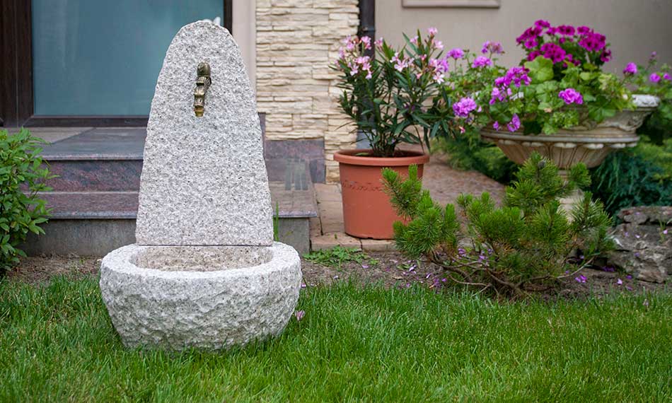 Eine Gartenbank aus Marmor oder Granit, ein Gartenbrunnen aus Granit oder Verbundwerkstoff sind alle Gartendekorationen, eine langlebige und gesunde Investition. Eine Marmorskulptur, eine dekorative Säule oder ein Monolith, um die Räume zu trennen und Ihren Garten individuell zu gestalten. Bodenplatten aus polygonalem Kavala- oder Homa-Schiefer neben japanischen Stufen aus Kavala-Schiefer mit gespaltener und getrommelter Oberfläche sind hervorragende Optionen für unsere täglichen Gartenspaziergänge. Monolith Makedon dekorativer Gartenstein hat ein einzigartiges Finish und dekorative Sandsteinkugeln haben einzigartige Formen und Farben.