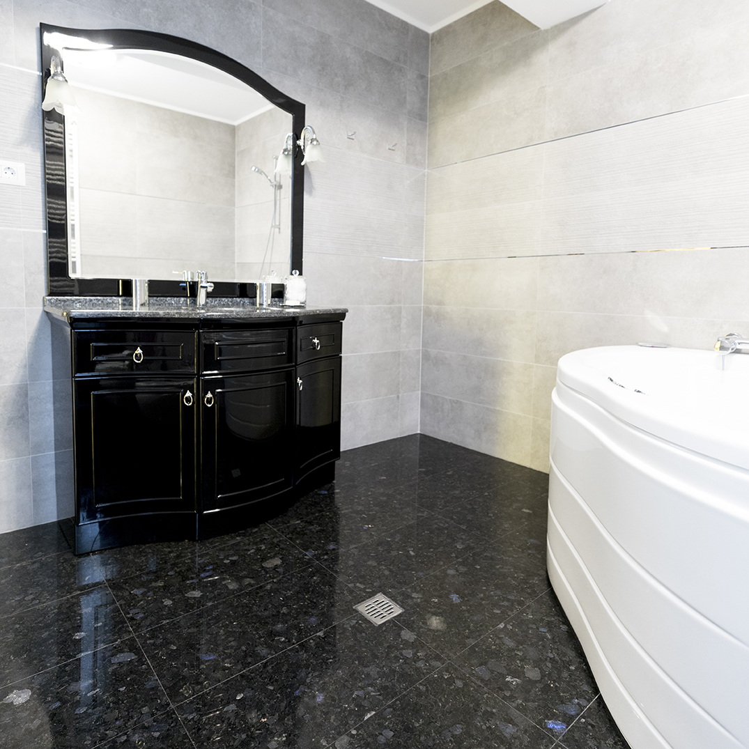 Haltbarkeit und Vielseitigkeit : Wir haben bereits gesagt, dass die Menschen beeindruckt sind, wenn sie diesen Naturstein zum ersten Mal sehen. Auf den zweiten Blick sieht Extra Blue Polished Granite aufgrund seiner hohen Haltbarkeit fantastisch aus. Grundsätzlich ist es ein Naturstein, der sehr schwer zu zerkratzen ist, Frost-Tau-Wechsel, Feuchtigkeit oder Chemikalien aushält und nur minimale Nachsorge erfordert. Trotzdem empfehlen wir, wie bei jedem anderen Naturstein, die Oberfläche zu imprägnieren. Ein weiterer praktischer Vorteil ist das verfügbare breite Fliesenformat (61 x 30,5 cm), das zu einer verkürzten Verlegezeit und einer einfachen Handhabung führt (Dicke von nur 1,2 cm).