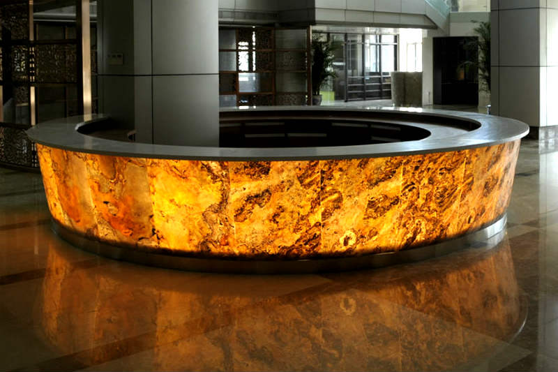 Mit einem Kleber ist es ideal für vertikale Verkleidungen an Innen- und Außenwänden. Gleichzeitig ist flexibler Schiefer auch eine sehr erschwingliche Lösung für eine spektakuläre Dekoration Ihrer Möbelstücke. Hier sehen Sie das gesamte Sortiment an SKIN Flexible Schieferfurnieren von PIATRAONLINE . Jede Art von flexiblem Schiefer sollte auch eine durchscheinende Version haben (siehe Bild unten).