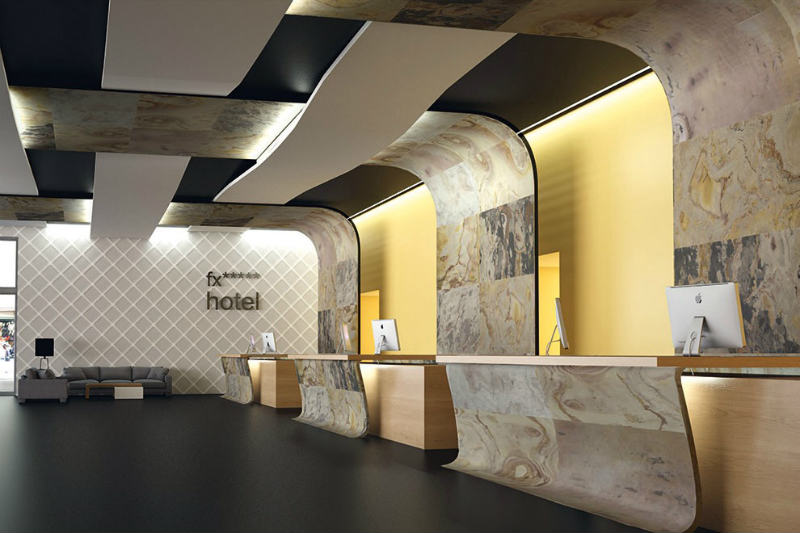Auf dem Natursteinmarkt für Innendekorationen ist flexibler Schiefer eine dünne Schieferplatte, nur 1,2 – 2 cm dick und sehr flexibel, die auf glatten und gekrümmten Oberflächen installiert werden kann. Nach der Versiegelung wird es wasserfest, somit ideal auch für Dekorationsprojekte in Nassräumen.