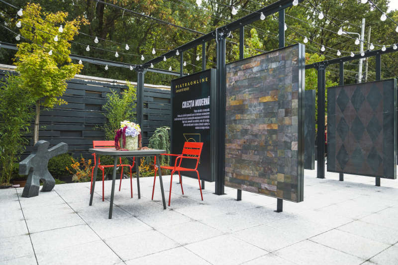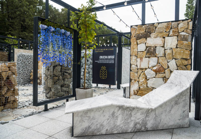 Es gibt Themenbereiche, die den Besuchern helfen sollen, die Vielfalt und das enorme Potenzial von Naturstein besser zu verstehen. So verfügt der traditionell-rustikale Bereich über Backofen und Grill, beides voll funktionsfähig; In der Nähe dieses Bereichs haben wir 2 Marmorlounges; Der mediterrane Sektor bietet eine große Auswahl an Steinen für die Herstellung von Gabionen, die in Rumänien bereits für Außendekorationsprojekte beliebt sind. Andererseits widmeten wir Terrazzo einen großen Bereich, gemessen an der zunehmenden Beliebtheit dieses Materials auf dem rumänischen Markt.