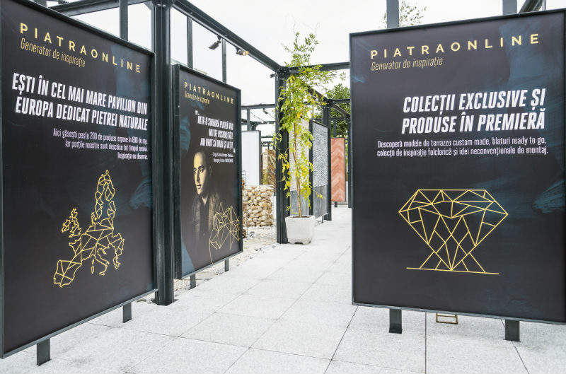 PIATRAONLINE präsentiert eine weitere europäische Premiere bei Innen- und Außendekorationsprojekten. Der am 21. September eröffnete Natursteinpavillon ist der größte in Europa und der erste seiner Art in Rumänien. Dieser einzigartige Ausstellungsraum umfasst eine Fläche von 800 m² und bietet den Besuchern mehr als 300 Produkte aus einer breiten Palette: Marmor, Granit, Travertin, Schiefer, Kalkstein, Quarzit, SKIN Flexible Schieferfurniere, jedes einzelne in vielen Größen und Ausführungen erhältlich.