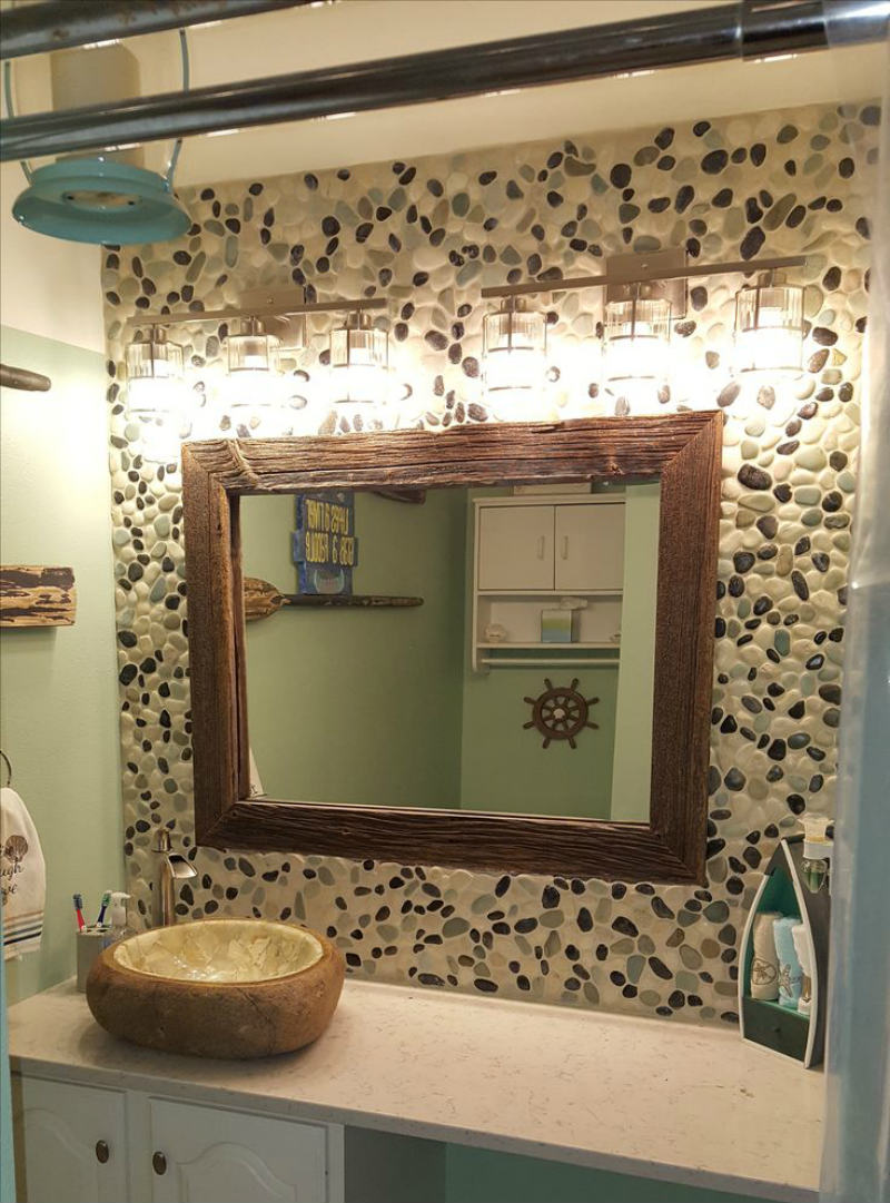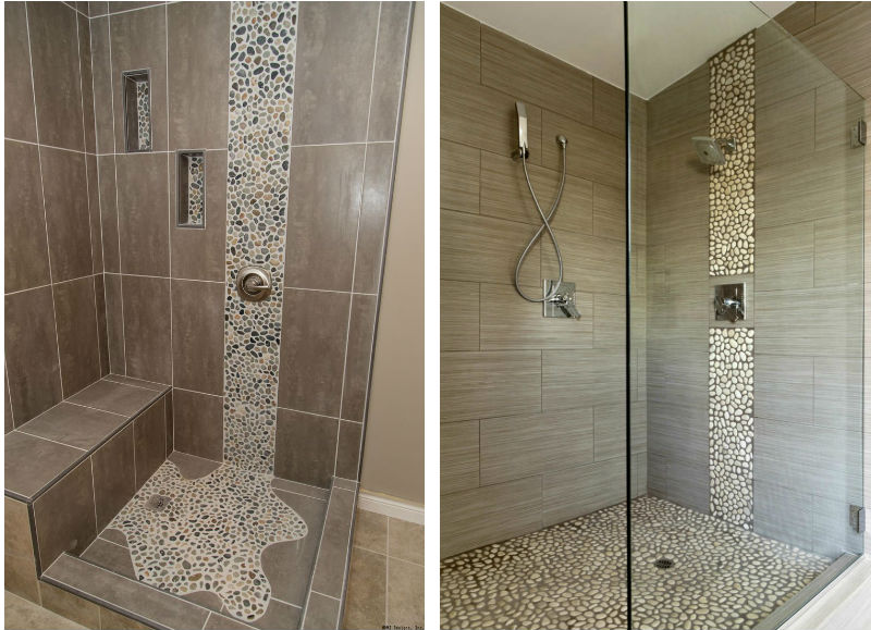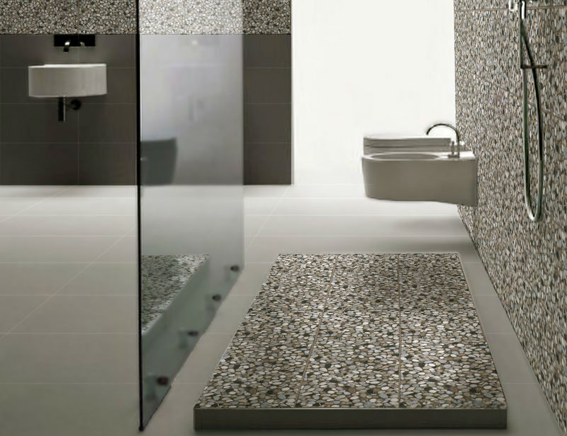 Natürlich werden die Kieselmosaike in Fortführung der Tradition sehr gerne in Badezimmern verwendet. Diese Steine brechen die Monotonie eines Dekorationsprojekts, vermitteln Persönlichkeit, mit ihnen können Sie den "verrücktesten" Plan eines Designers oder Ihre eigene Idee in die Tat umsetzen. Kiesel bedeutet vor allem gestalterische Freiheit: Sie können ein Stück Wand, eine ganze Wand, einen Boden oder einen Teil davon mit rechteckigen oder geschwungenen Konturen verkleiden.