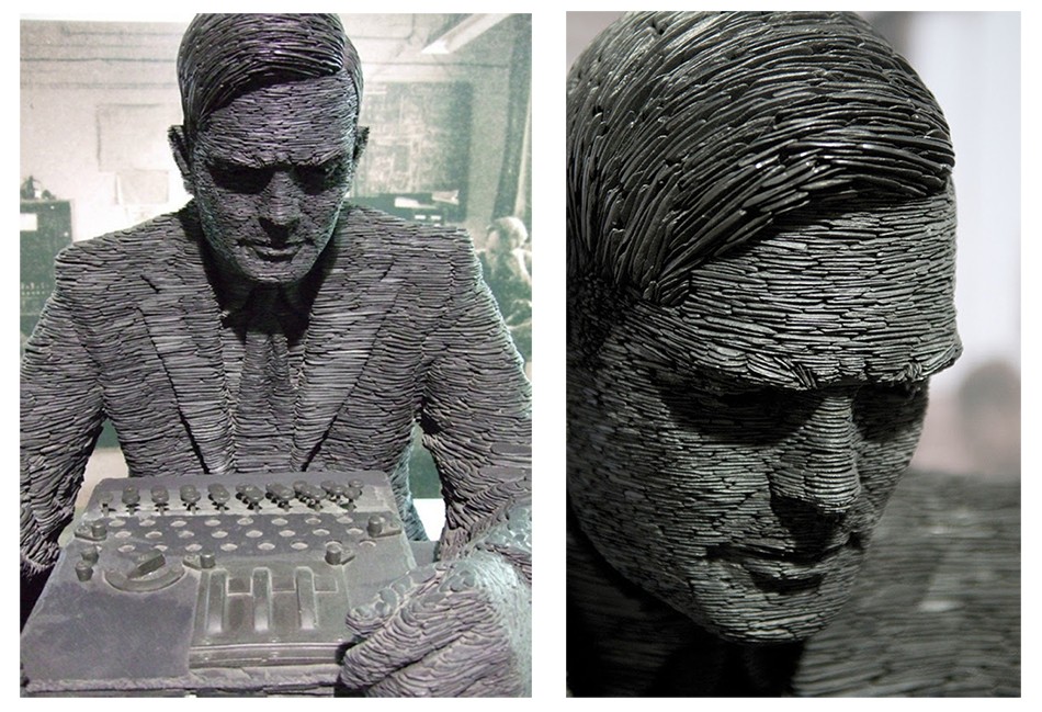 Die Statue von Alan Turing besteht aus Zehntausenden von Einzelteilen und wiegt über anderthalb Tonne