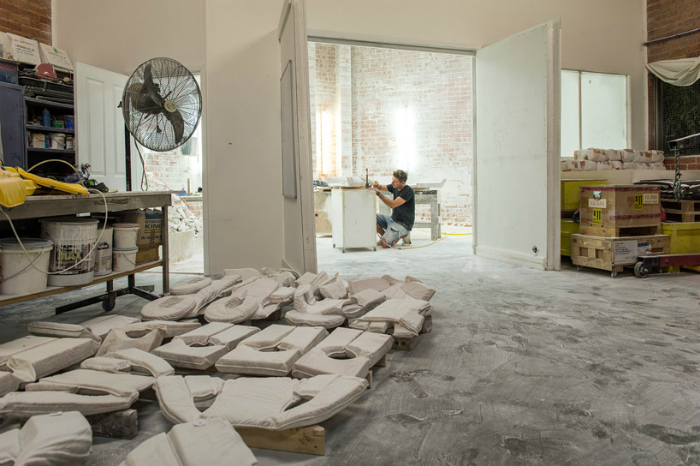 Da wir aus Marmor sind, können wir sagen, dass wir für jeden Tag mit kleinen Dingen eine Art Tempel bauen. Aber gerade indem er diese Botschaft fördert, indem er den primären Sinn der Objekte verändert, intrigiert Seton, ironisiert, stellt Fragen. Und all diese Kreationen könnten Leben und Bedeutung ohne dieses außergewöhnliche Material, das Marmor ist, nicht einfangen.
