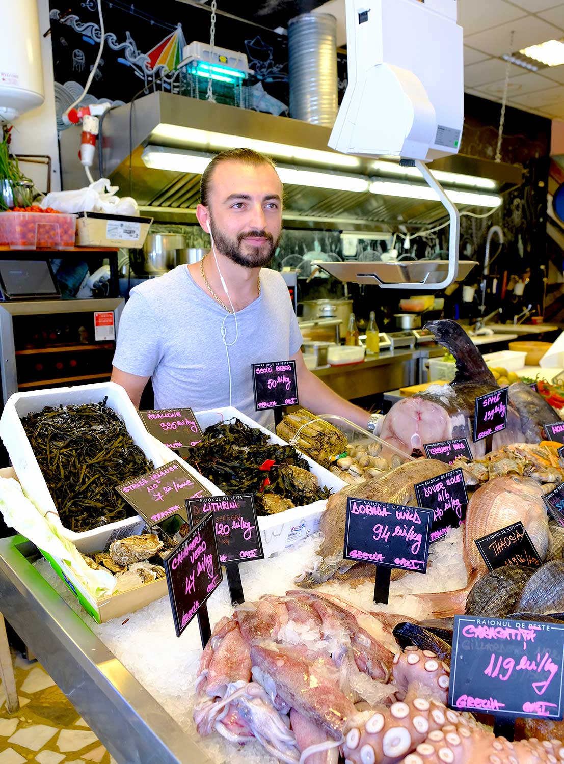 Dies ist ein ziemlich beliebtes Konzept in Europa – Fischbar – besonders in Städten in Meeresnähe, weil es den Kunden Vertrauen in ihre Gerichte gibt. Grundsätzlich, wenn Sie Lust haben, etwas wie Fisch oder Meeresfrüchte zu kochen, aber nicht wirklich kochen möchten, gehen Sie zu "Raionul de peste", um Ihre Rohstoffe zu kaufen und einen Platz am Tisch zu reservieren, um ein interaktives kulinarisches Erlebnis zu genießen - mit Feedback ab dem ersten Biss. Auch der Concept Store Mega-Image in der Cobalcescu Street verwendet das gleiche Konzept mit Fisch und frischen Meeresfrüchten
