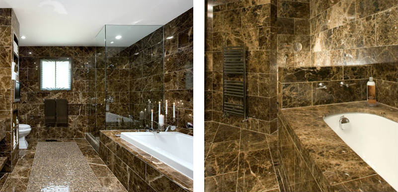Eines der Missverständnisse in Bezug auf Natursteinböden ist der rutschige Aspekt, der sie als ungeeignet für Badezimmer qualifiziert. Ein solcher Irrglaube beruht jedoch auf einer Tatsache: Es wird empfohlen, glänzenden Naturstein (mit polierter Oberfläche) in Badezimmern zu vermeiden, es sei denn, er wird gemäß der folgenden Beschreibung behandelt. So wird eine polierte Oberfläche durch spezielle Behandlungen rutschfest, verleiht dem Badezimmer Persönlichkeit und macht es eleganter.