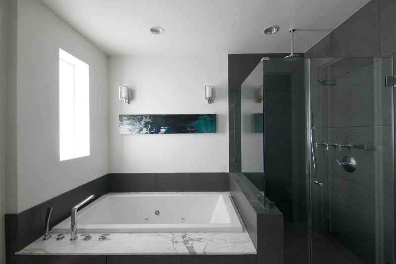 Foto 1 - Badezimmer mit Strahler an der marmorverkleideten Wand