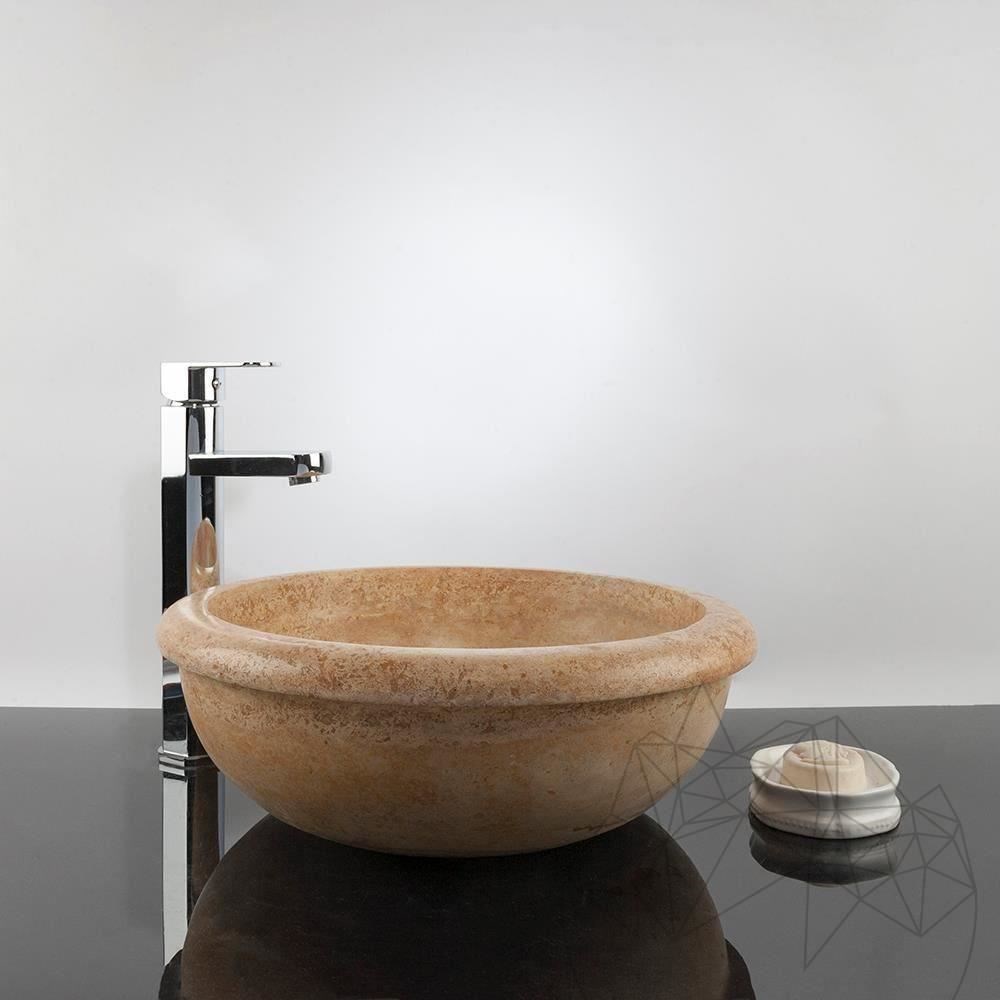 Das Waschbecken aus Travertin Yellow , Modell RS-19 haben eine lebendige Farbe, die den Raum aufwacht und die zarte Kurven stellen eine Entspannung und eine einladende Atmosphäre vor. Sie können auch in die Küche benutzt werden. Unabhängig von Raum, das Waschbecken im Badezimmer passt sowohl in residenzialen Gebäuden als auch im öffentlichen Gebrauch: Unternehmen, Clubs, Restaurants, Cafés… Es ist robust und vielseitig, wenn es um seine Fähigkeit zu verschiedenen dekorativen Stilen anzupassen, kommt . Für eine bessere Ausrichtung mit der Umwelt, dieses Waschbecken aus Travertin kann auf eine Platte aus Travertin Yellow installiert werden. Somit erzeugt das Gefühl der Entspannung durch das Beitritt der beiden Elemente.