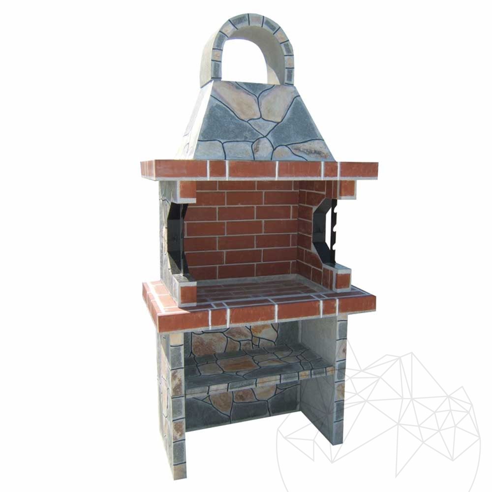 Dieser kleine Grill ist ideal für kleine Räume, Abende mit Freunden und Kochshows. Dies ist ein sehr langlebiges Produkt, das aus Stahlbetonplatten, dekorativen Ziegeln und mit Schiefer verkleidet ist. Für eine bessere Verwaltung und einen einfachen Zugang ist der Grill mit einem Regal ausgestattet, das mit polygonalem Stein verkleidet ist. Um Ihnen die Arbeit noch einfacher zu machen, wird dieser Grill auf Europaletten geliefert, wobei eine "LEGO"-artige Installationszeichnung angebracht ist. Alles, was Sie tun müssen, ist, die Schritte zum Zusammenbau des Grills zu befolgen. Wenn der Klebstoff getrocknet ist (3-5 Stunden), ist der Grill einsatzbereit. Ein zusätzliches Merkmal ist das Metallgitter, das im Verkaufspaket enthalten ist.