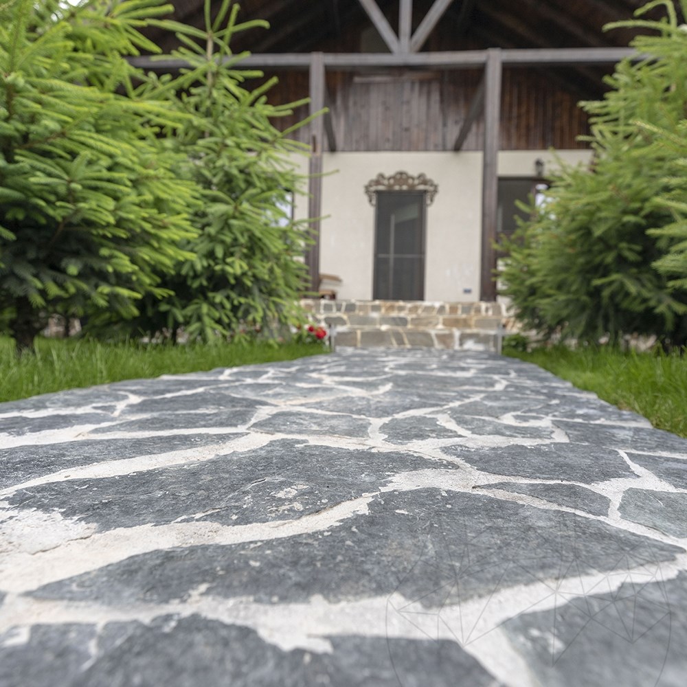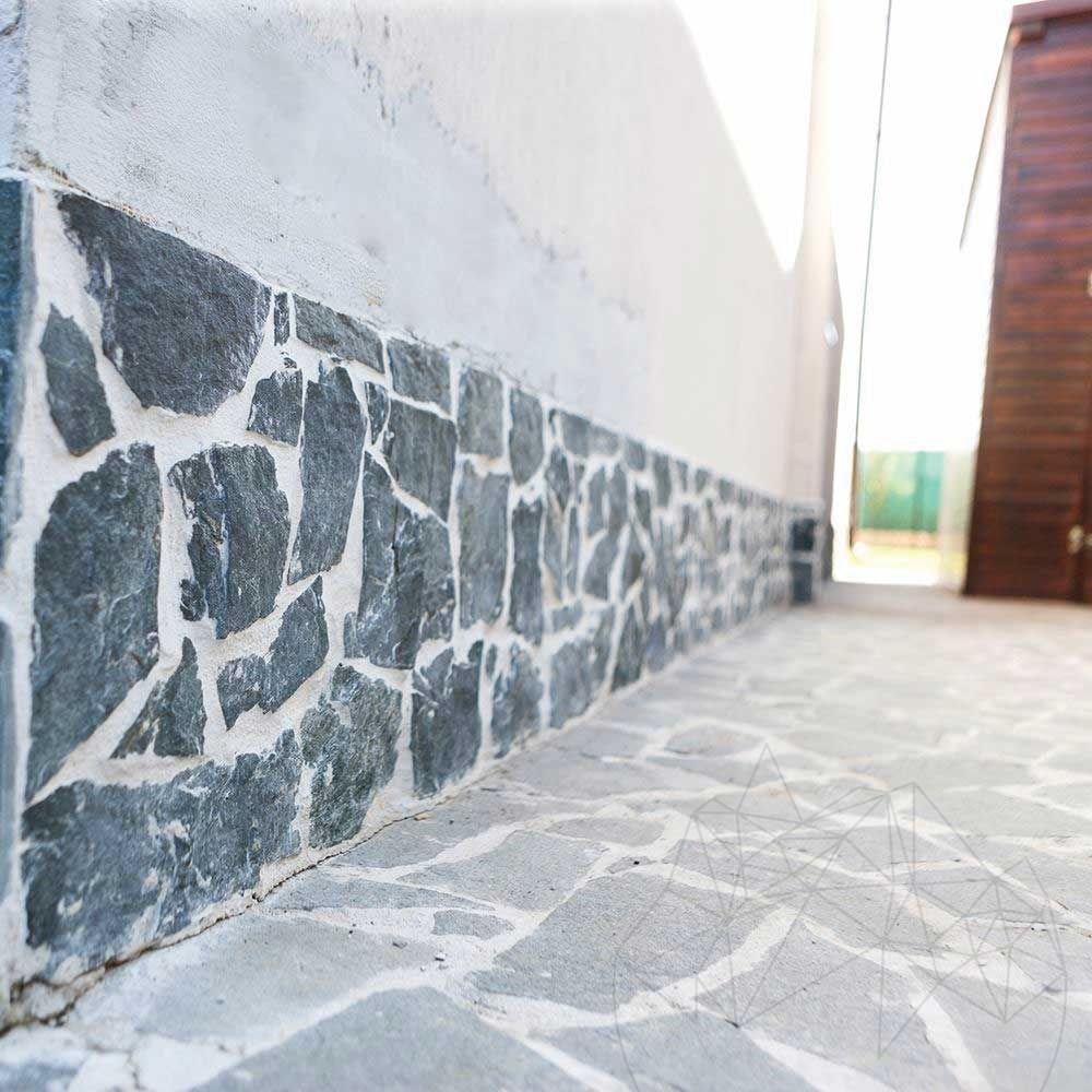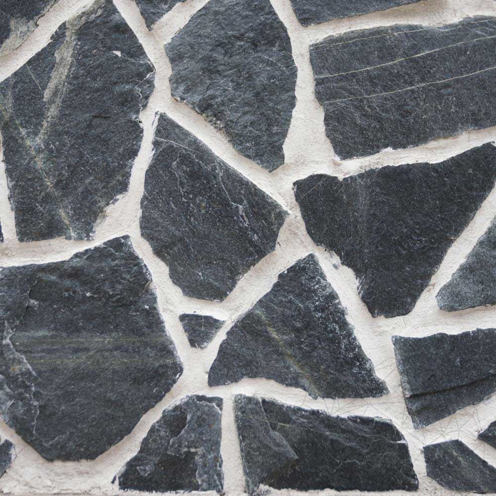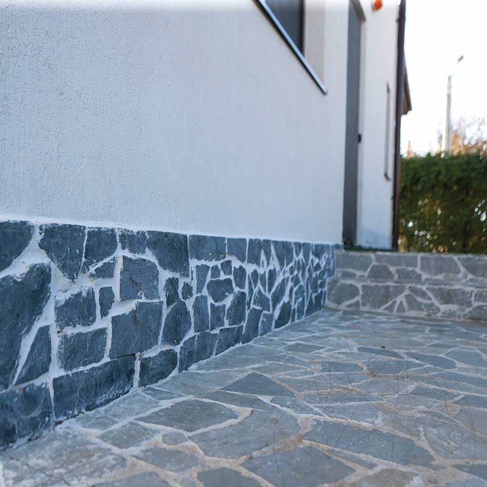 Da es perfekt in Garteneinrichtungen (Gehwege) funktioniert, bietet der Naturstein Schiefer Grün Lagune eine exzellente Lösung auch in senkrechten Verkleidungen für Fassaden, Terrassen, Zäune und Innenwende an. Die polygonalen Schieferplatten Grün Lagune haben kleine und mittlere Maßen und lassen somit eine große Kompositionsfreiheit zu. Die Verlegung erfolgt auf einer Klebstoffschicht. Die mittleren Farbabweichungen helfen zur Erschaffung eines einheitlichen und erholsamen Aussehens. Diese können auf einer Klebstoffschicht (senkrecht/waagrecht) oder auf halbnassen Estrich (waagrecht) montiert werden. Dieser Naturstein ist nicht nur robust, ästhetisch und funktional sondern hält auch sehr gut auch beim Frost-Tau-Phänomen aus.
