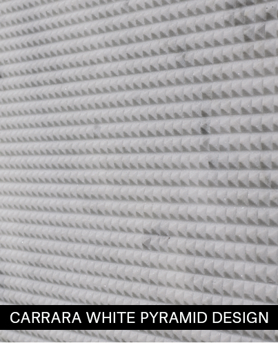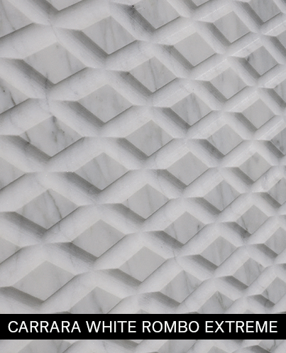 Das Maserungsmuster des Marmors wird in unerwarteten Texturen neu erfunden. Die in den Stein gemeißelten Linien vermitteln eine Art Unendlichkeit, die man zwar vorhersehen, aber niemals anfassen kann.