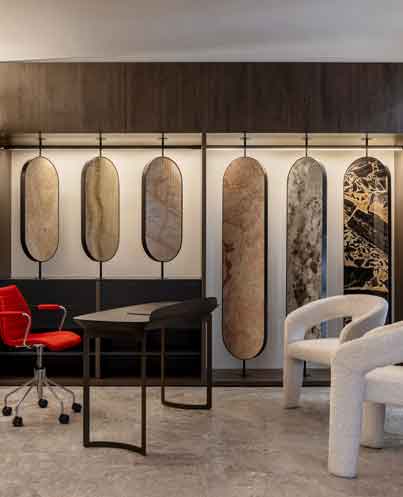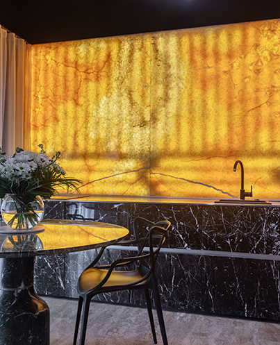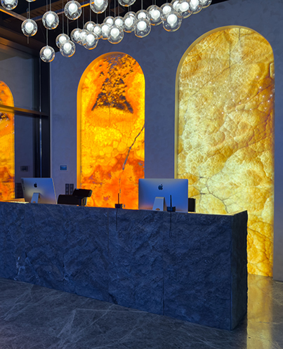Egal, ob Sie sich eine mutige Akzentwand, eine elegante Bar, einen anspruchsvollen Empfangsbereich oder einen luxuriösen Esstisch vorstellen, unsere Natursteinplatten bieten eine unvergleichliche Vielseitigkeit.
