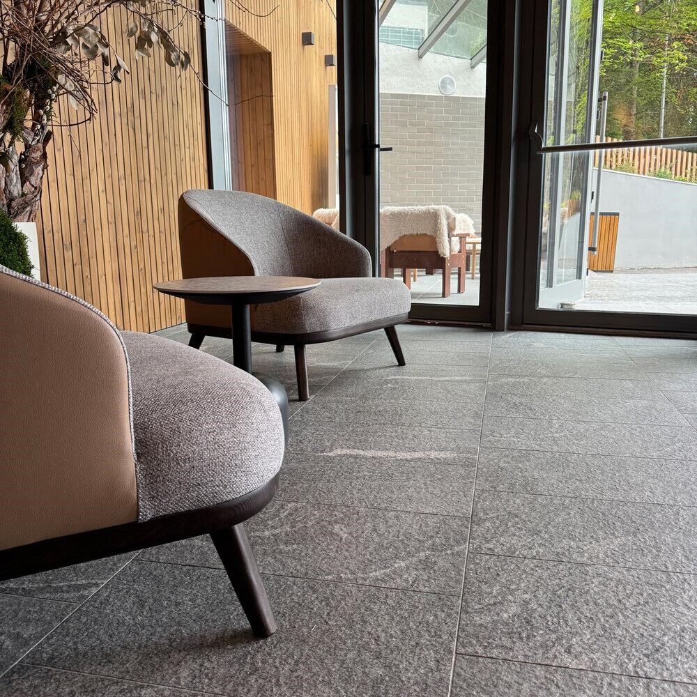 - Poolränder oder nasse Zonen: dank ihrer Wasserbeständigkeit und rutschfesten Eigenschaften.