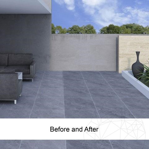 - Farbverstärkende Behandlung: Stellt die Tiefe und natürliche Schönheit von Porzellanfliesen wieder her.
