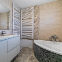 Dieser gemaserte Travertin mit Epoxidbeschichtung eignet sich ideal für vielfältige Anwendungen: von Wand- und Bodenbelägen in Badezimmern, Küchen und Wohnzimmern über Küchenarbeitsplatten bis hin zu Außenprojekten wie Fassaden, Sockeln oder dekorativen Rahmen. Die Epoxidschicht erhöht die Haltbarkeit der Platte und bietet hervorragende Beständigkeit gegen Feuchtigkeit und Flecken, wodurch sie sich ideal für stark frequentierte Bereiche eignet.