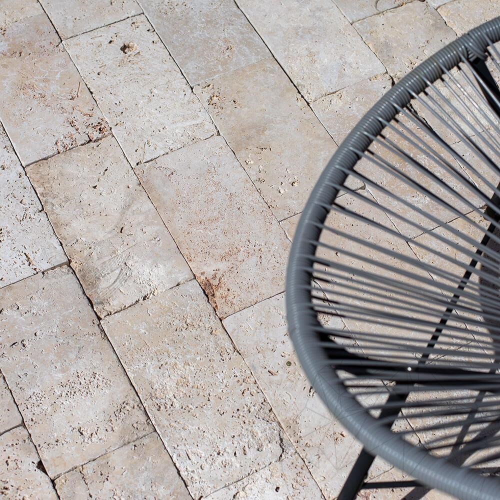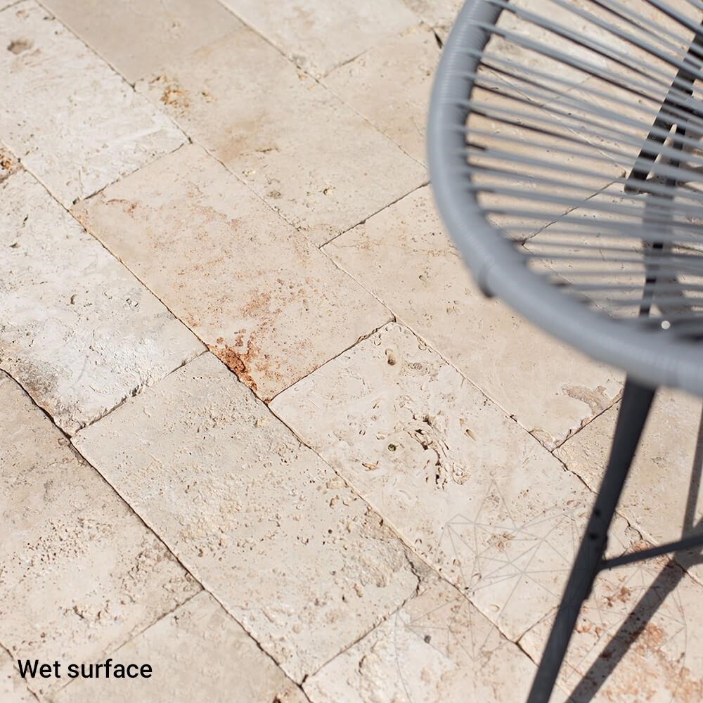 Berücksichtigen Sie bei der Planung eines Dekorationsprojekts Materialien, Größen und Arten von Oberflächen. Seine rutschfeste Oberfläche eignet sich perfekt für Außenverkleidungen und Nassräume. Ein solcher warmer Ton Travertin passt am besten zu überdachten / nicht überdachten Terrassen. Es funktioniert auch gut als Pool-Coping-Dekoration um Schwimmbäder. Außerdem können Sie es auch als Außenpflaster in Bereichen mit mittlerem und sogar starkem Verkehr verwenden. Warum? Denn Stein ist langlebig und die 3 cm Dicke ist nützlich. So ein schöner Buttercremeton vermittelt Charisma. Darüber hinaus gewinnt das taumelnde Finish an Popularität.